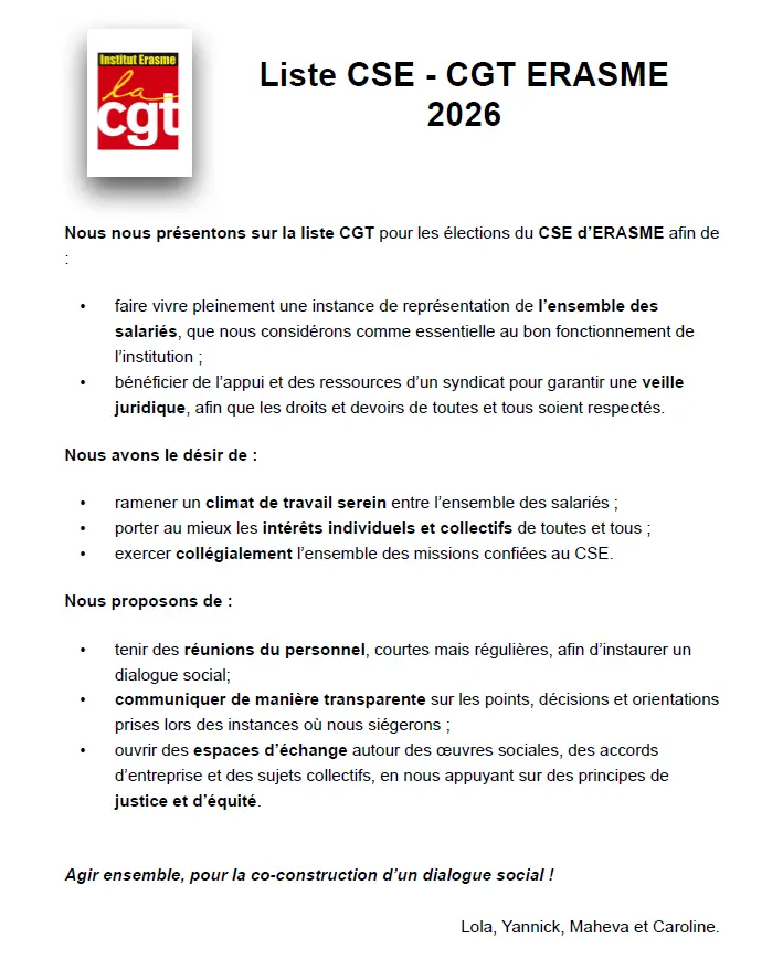 Retrouvez la profession de foi de nos camarades de l'Institut du Travail Social Erasme